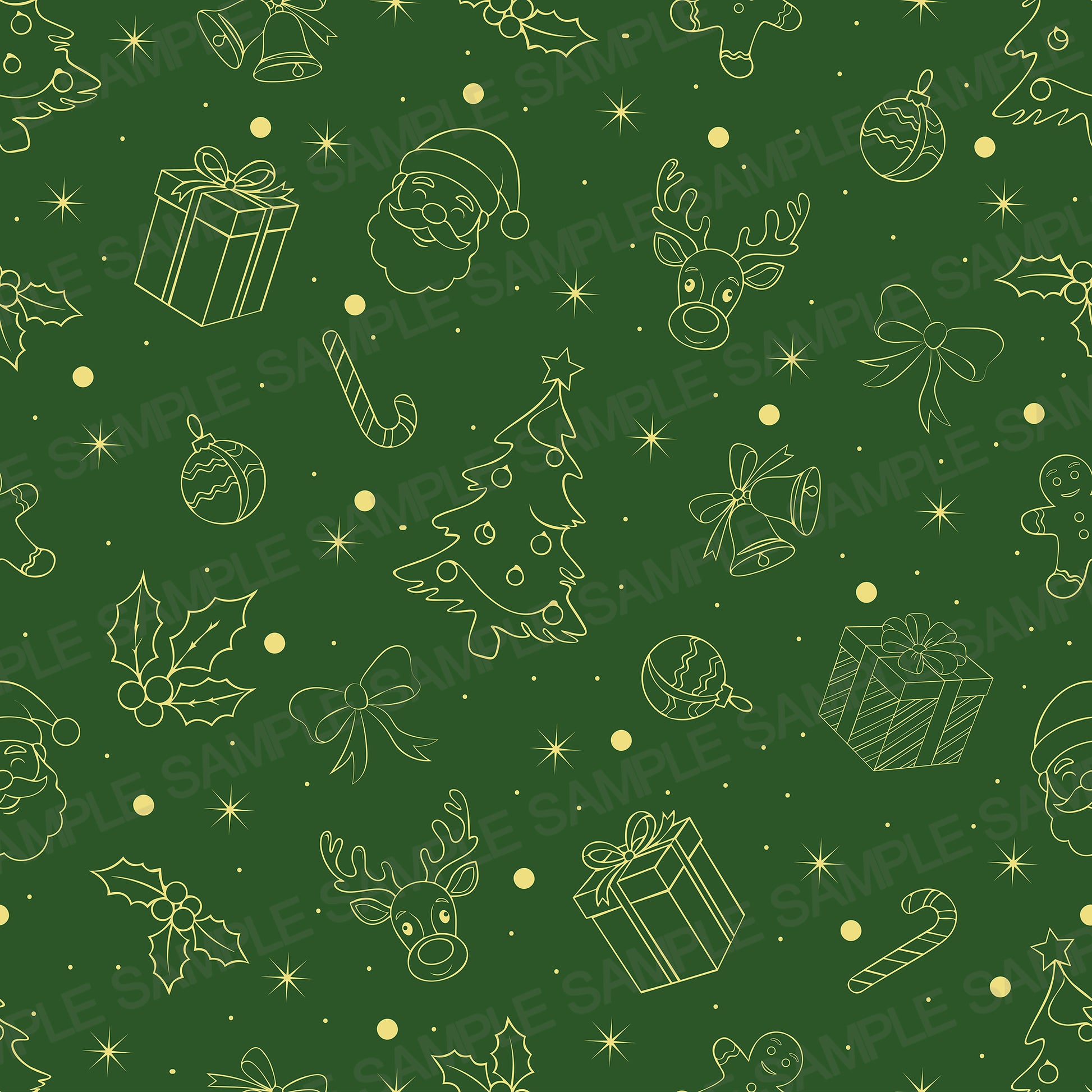 Add timeless festive elegance with this green and gold Christmas wrapping paper. Featuring delicate line art of Santa, reindeer, and ornaments, this design brings warmth and sophistication to every holiday package.