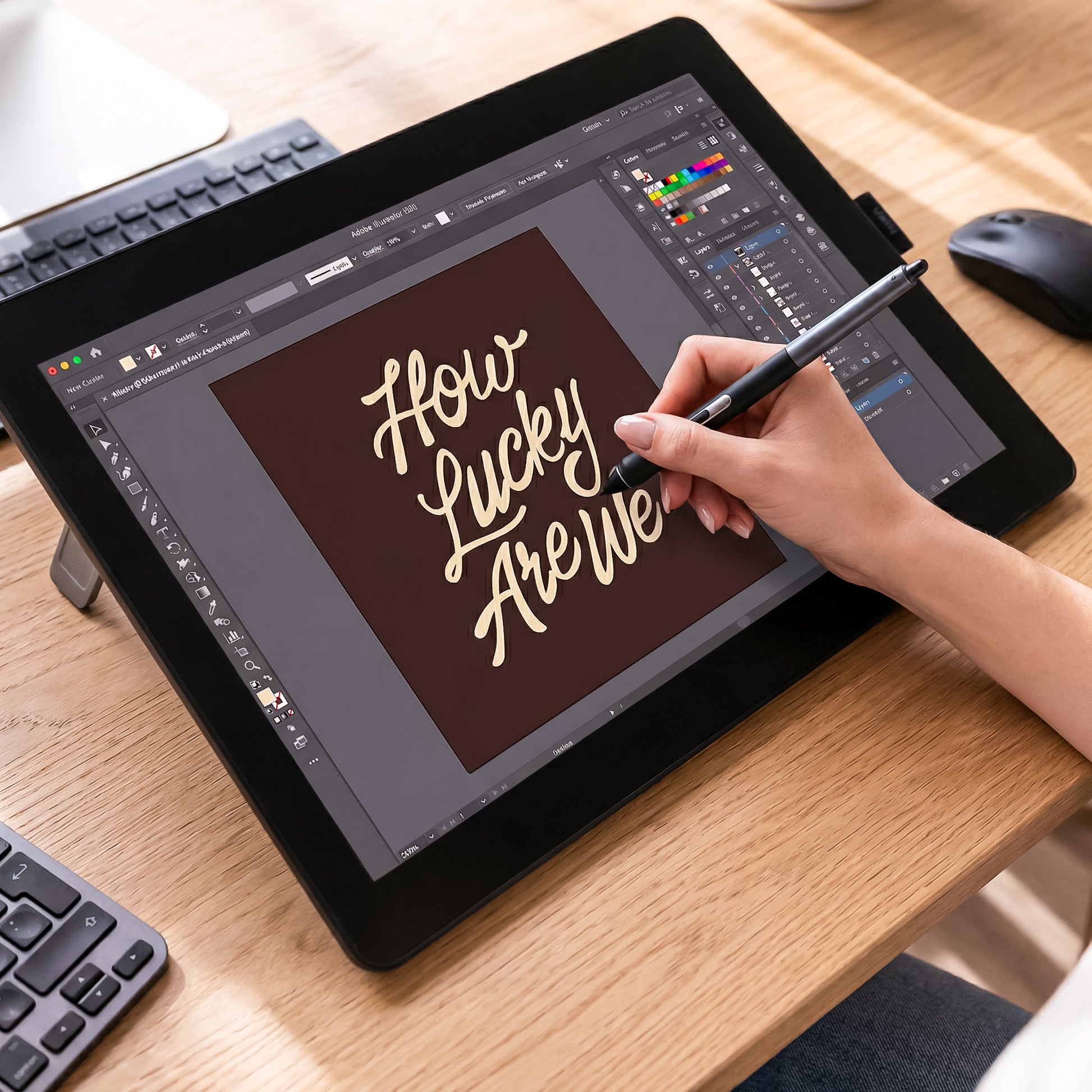 Add a warm, nostalgic vibe to your space with this "How Lucky Are We" hand-drawn typography print. Featuring a trendy retro font on a moody, dark neutral background, this statement piece is perfect for elevating your living room, bedroom, or entryway decor.
