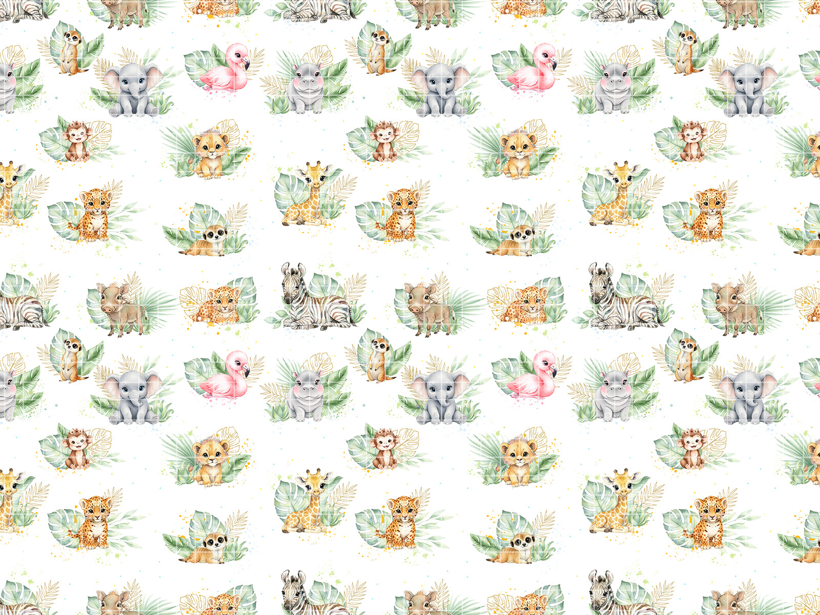 Featuring beautifully hand-painted watercolor baby elephants, lions, giraffes, flamingos, and tropical jungle leaves, this digital paper pack is perfect for your creative projects. The seamless repeating designs are highly detailed, soft, and gender-neutral, making them ideal for baby showers and newborn products.